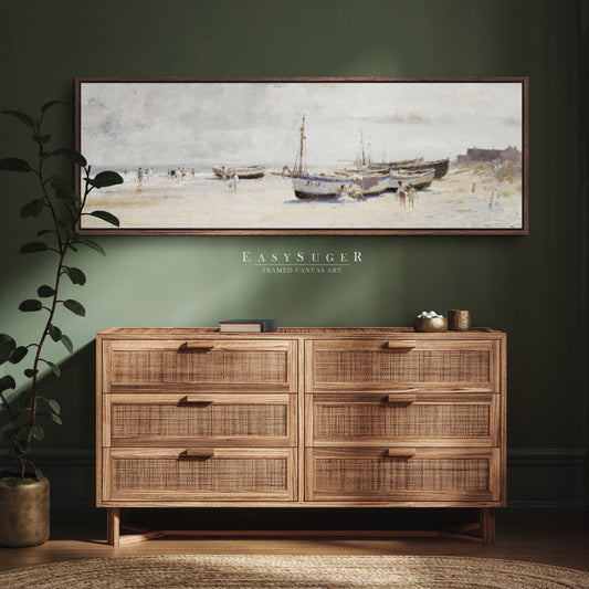 EasySuger Ultra Wide Oil Painting Beach Framed Canvas Print | with hanging kit