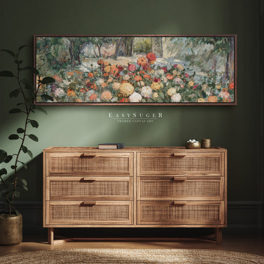 EasySuger Ultra Wide Wildflower Field Landscape Oil Painting Framed Canvas Print | with hanging kit | VT78