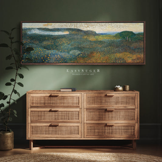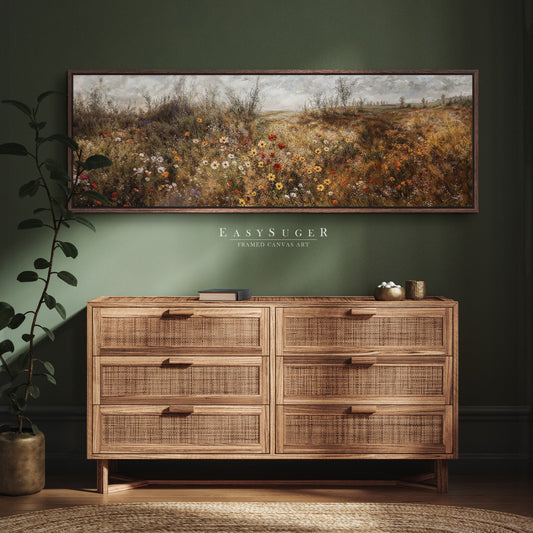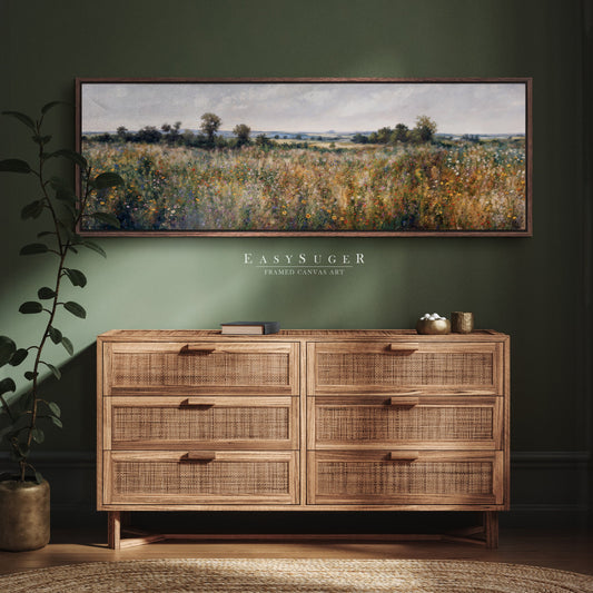 EasySuger Ultra Wide Vintage Wildfield Framed Canvas Print | with hanging kit | UWF23