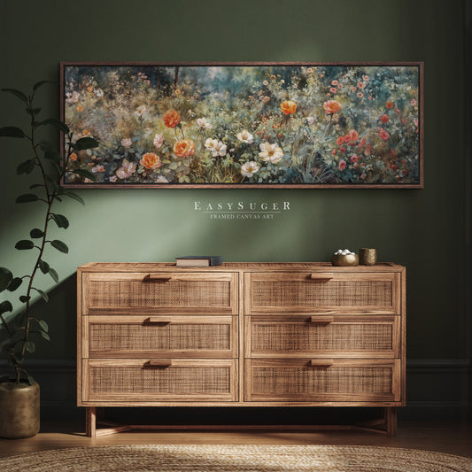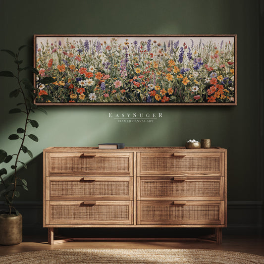 EasySuger Ultra Wide Vintage Wlidflower field Framed Canvas Print | with hanging kit | UWF8