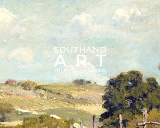 SouthandArt Vintage Landscape Wall Art Print, Cloudy Sky and Field Framed Large Gallery Art, Minimalist Art Ready to Hang (with hanging kit)