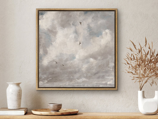 SouthandArt Vintage moody clouds Wall Art Print, Cloudy Sky Framed Large Gallery Art, Minimalist Art Ready to Hang (with hanging kit)