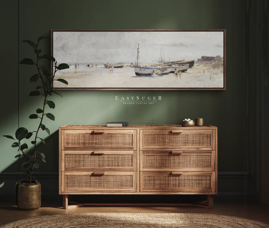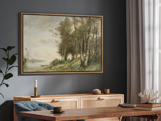 SouthandArt Vintage Landscape Framed Print, Antique Lake Framed Large Gallery Art, Minimalist Art with hanging kit