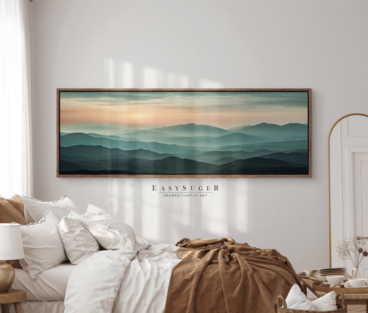 SouthandArt Vintage Flower Field Framed Print, Mountain Landscape Framed Large Gallery Art, Minimalist Art Ready to Hang (with hanging kit)