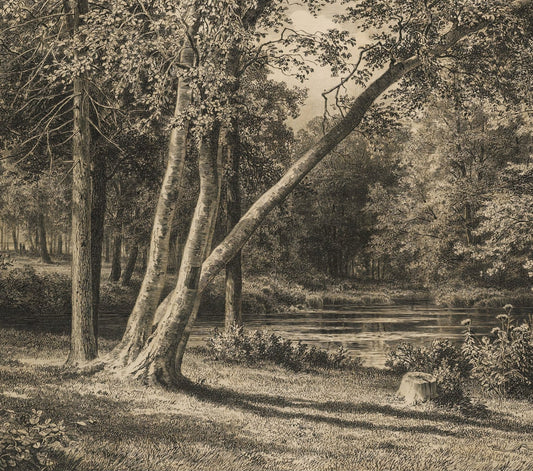 Vintage Forest Landscape Wall Art | Sepia Woodland Scene with Trees & Pond | Rustic Nature Print | Framed Canvas Decor | Cottagecore Wall Decor | PH12