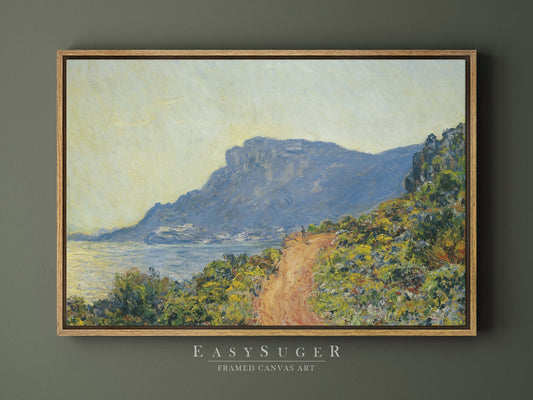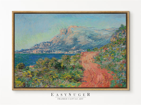 EasySuger Claude Monet Wall Art | La Corniche near Monaco 1884 | Framed Canvas Wall Art with hanging kit