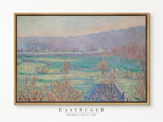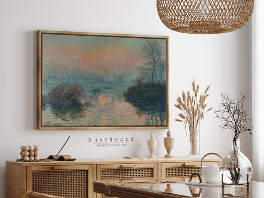 EasySuger Claude Monet Soleil couchant sur la Seine à Lavacourt, effet d’hiver (1880) | Framed Canvas Wall Art with hanging kit
