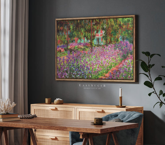 EasySuger Claude Monet The Artist's Garden at Giverny Framed Print | Framed Canvas Wall Art with hanging kit | AG56
