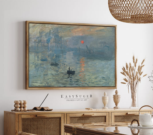 EasySuger Claude Monet Wall Art | Claude Monet - Impression soleil levant (1872) | Framed Canvas Wall Art with hanging kit