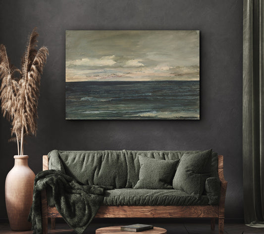 EasySuger Oil Painting Abstract indigo Seascape Wall Art, Ocean Sky Gallery Framed Art, Vintage Wall Art with Hanging kit | SC2