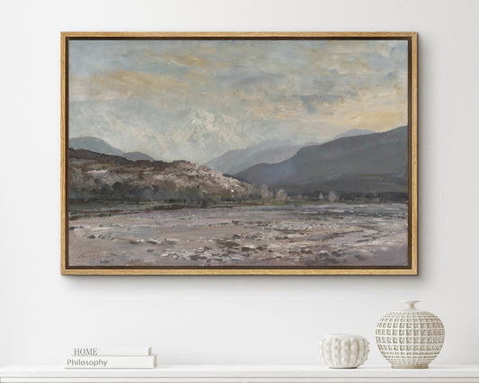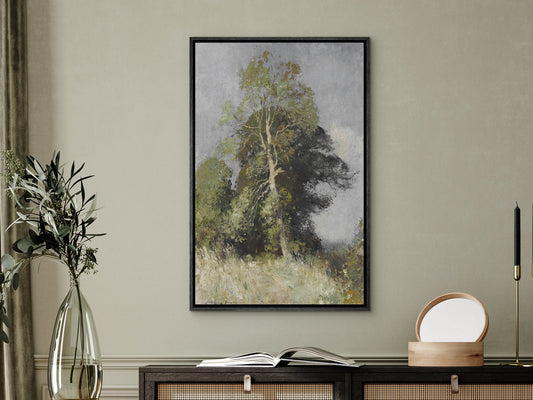 EasySuger Muted Green Landscape Art Print | Riverside Painting Large Framed Canvas | Minimalist Art Ready to Hang | LS55