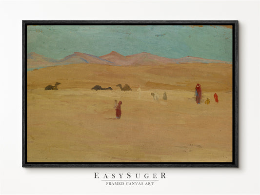 EasySuger Oil Painting Desert with Camel Wall Art, Nature Framed Large Gallery Art, Minimalist Art Ready to Hang (with hanging kit)