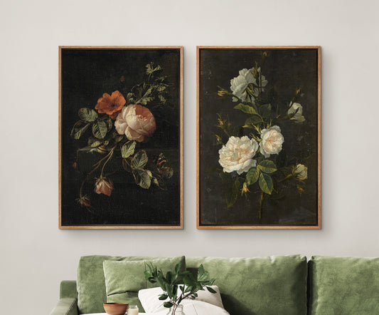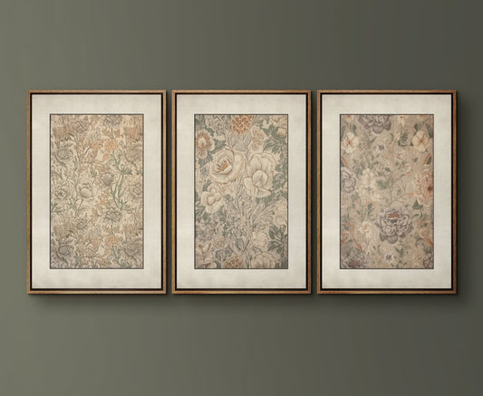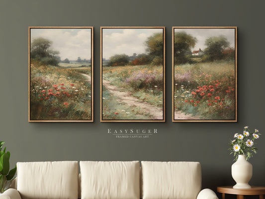 EasySuger 3 Panels Flowers Garden Wall Art, Vintage Nature Framed Large Gallery Art, Antique Art Ready to Hang