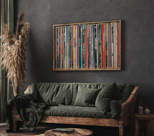 SouthandArt Retro Books Spines Wall art | Vintage Framed Canvas Art Print | RS2