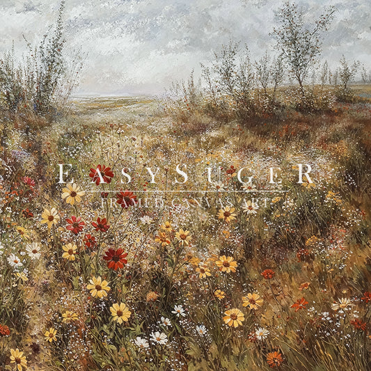 EasySuger Autumn WildField Framed Canvas Art, Nature Framed Large Gallery Art, Minimalist Art Ready to Hang with hanging kit