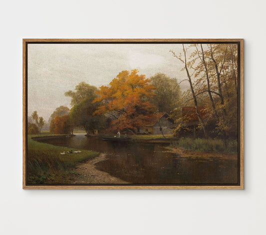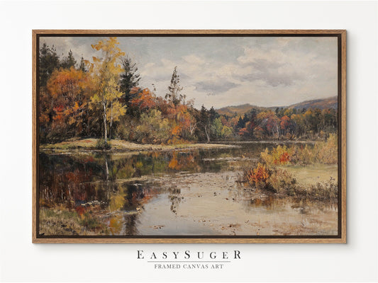EasySuger Autumn by the River Framed Canvas Art, Nature Framed Large Gallery Art, Minimalist Art with hanging kit | GW25
