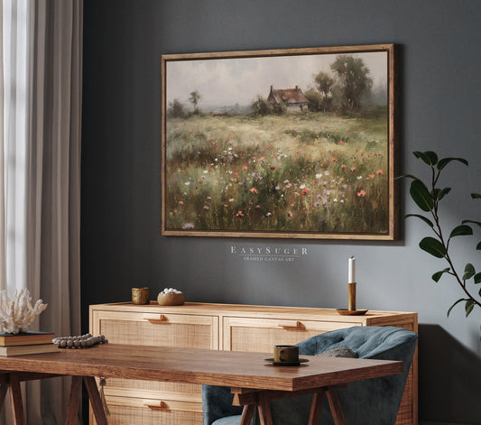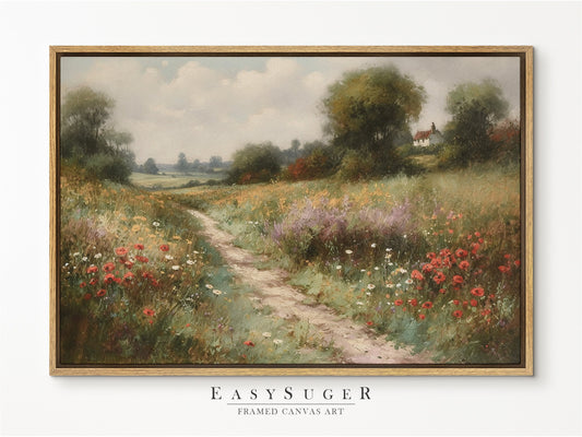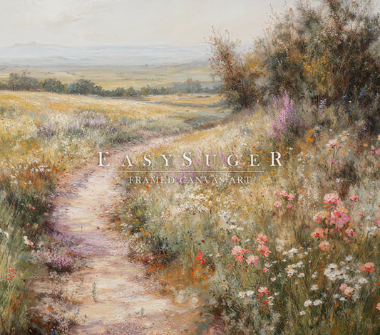 EasySuger Wildflower Field Landscape Oil Painting Framed Canvas Print | with hanging kit | VT50