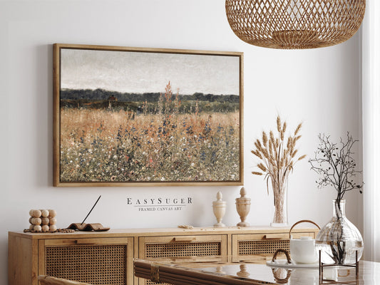 EasySuger Wildflower Field Wall Art Print, Nature Framed Large Gallery Art, Minimalist Art with hanging kit | WFG5