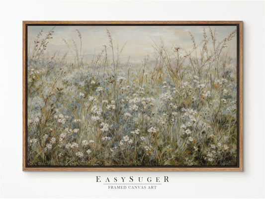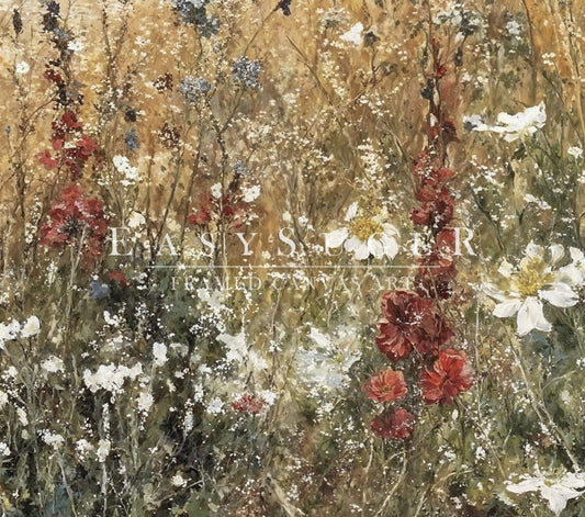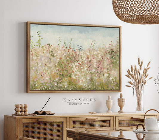 EasySuger Wildflower Field Landscape Oil Painting Framed Canvas Print | with hanging kit | VT50