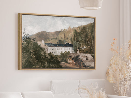 EasySuger European Villa Landscape Framed Canvas Wall Art Print with hanging kit