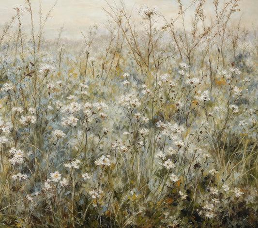 2 Panels Wildflowers field by the Sea | Vintage Nature Framed Large Gallery Art, Antique Art Ready to Hang | WSD4