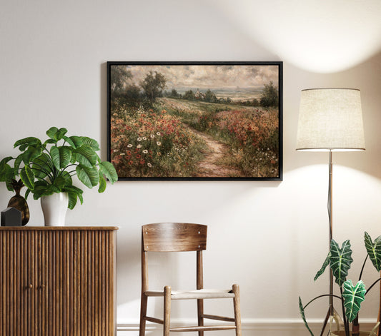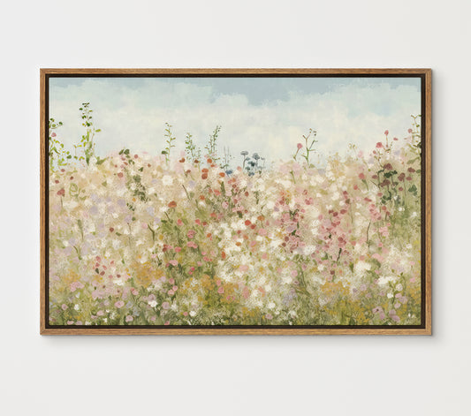 EasySuger Wildflower Field Landscape Oil Painting Framed Canvas Print | with hanging kit | VT50