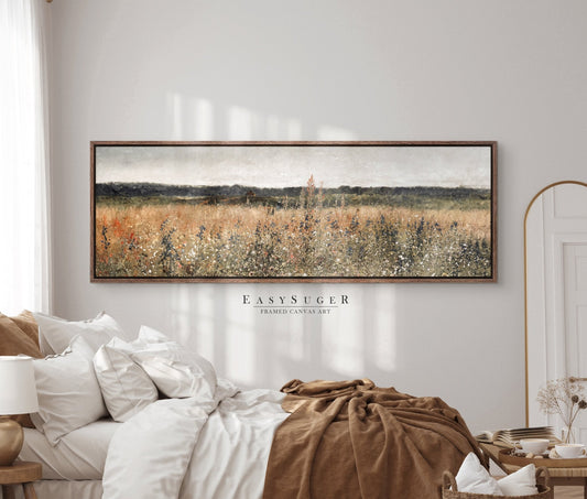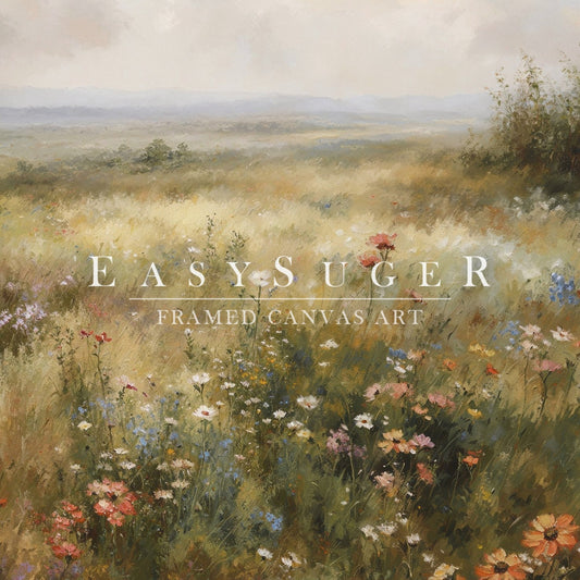 EasySuger Wildflower Field Landscape Oil Painting Framed Canvas Print | with hanging kit FF23