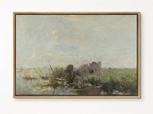 Cows grazing Framed Canvas Print | Large Framed Canvas Print with hanging kit