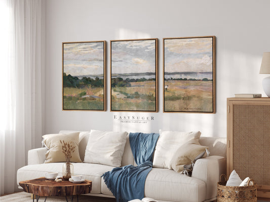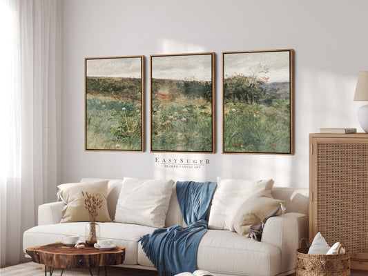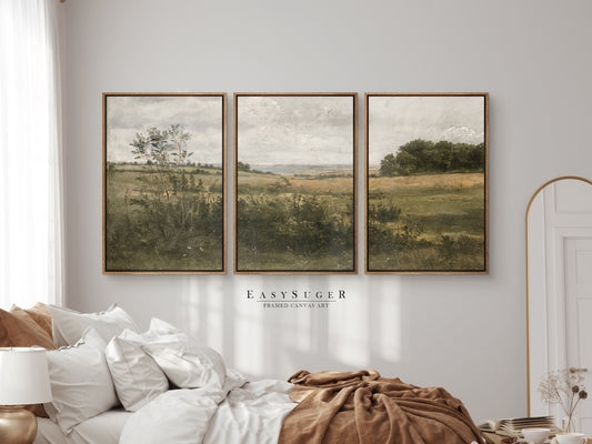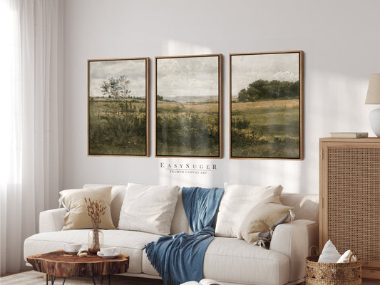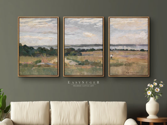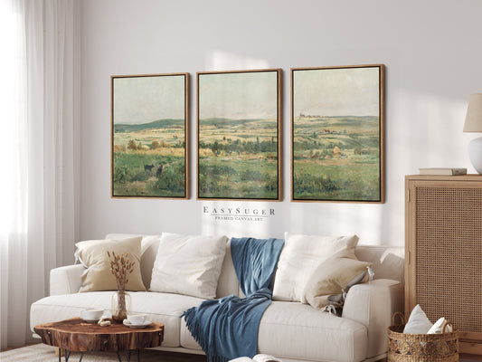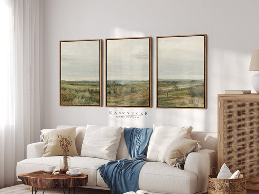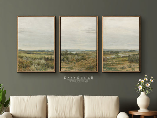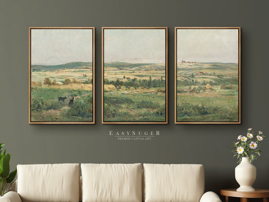 EasySuger 3 Panels Vintage Landscape field Landscape Wall Art, Vintage Nature Framed Large Gallery Art, Antique Art Ready to Hang | M25