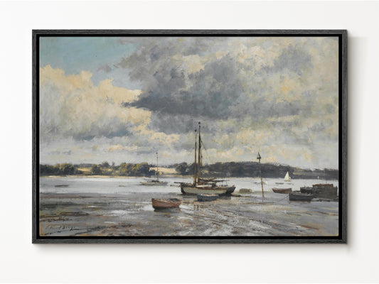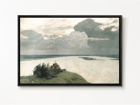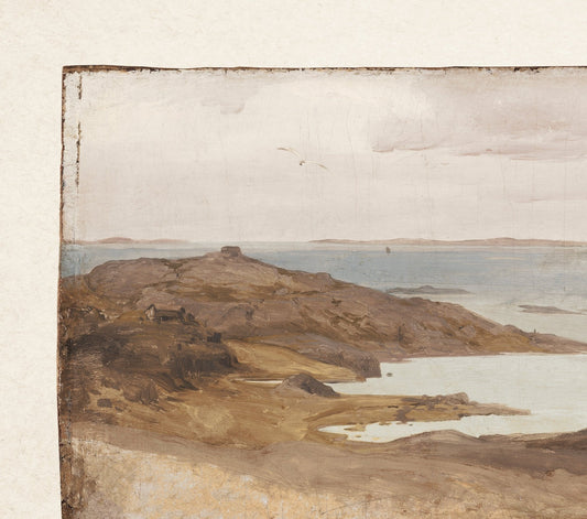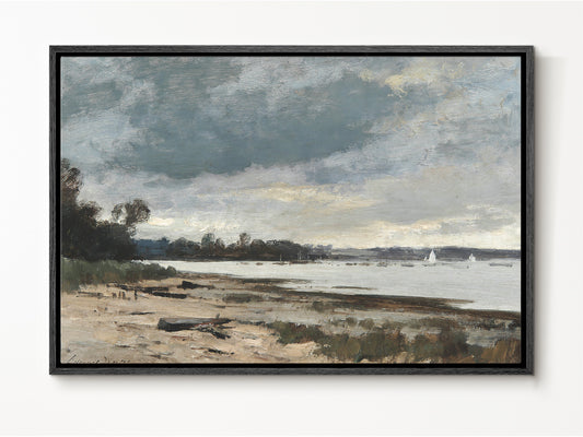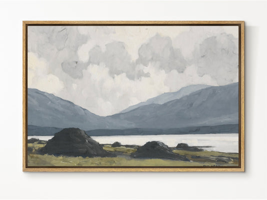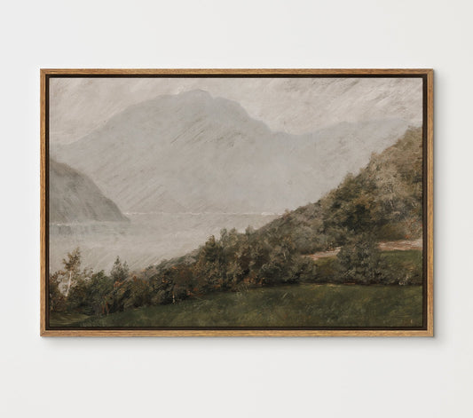 SouthandArt Vintage Landscape Framed Print, Antique Lake Framed Large Gallery Art, Minimalist Art with hanging kit