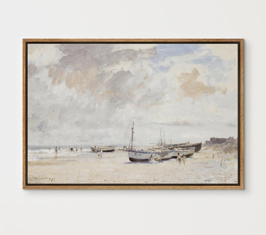 EasySuger Vintage Seascape Wall Art, Rustic Coastal Framed Large Gallery Art, Minimalist Art Ready to Hang (with hanging kit)