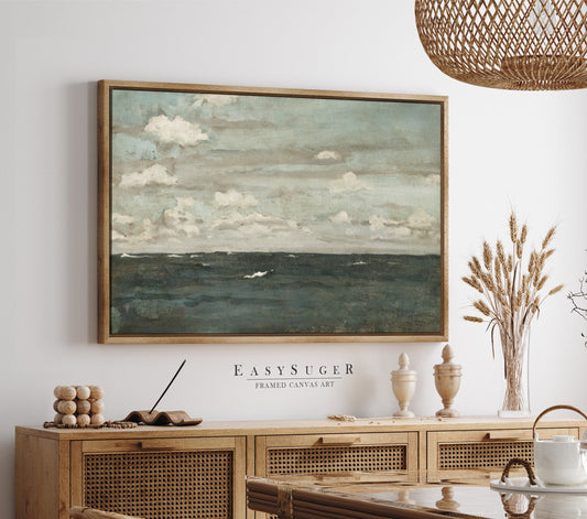 EasySuger Serene Seascape Wall Art, Cloud Study Nature Framed Large Gallery Art, Minimalist Art Ready to Hang | SC1