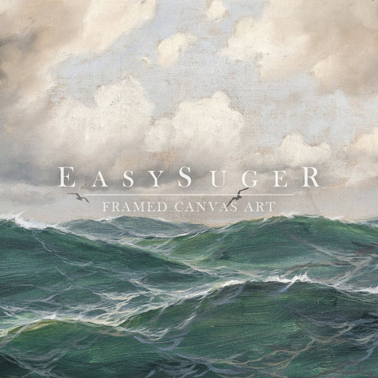 EasySuger Vintage Seascape Wall Art, Ocean Sky Gallery Framed Art, Vintage Wall Art for living room and bedroom (with hanging kit)