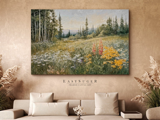 EasySuger Wildflower Field Landscape Oil Painting Framed Canvas Print | with hanging kit FF23