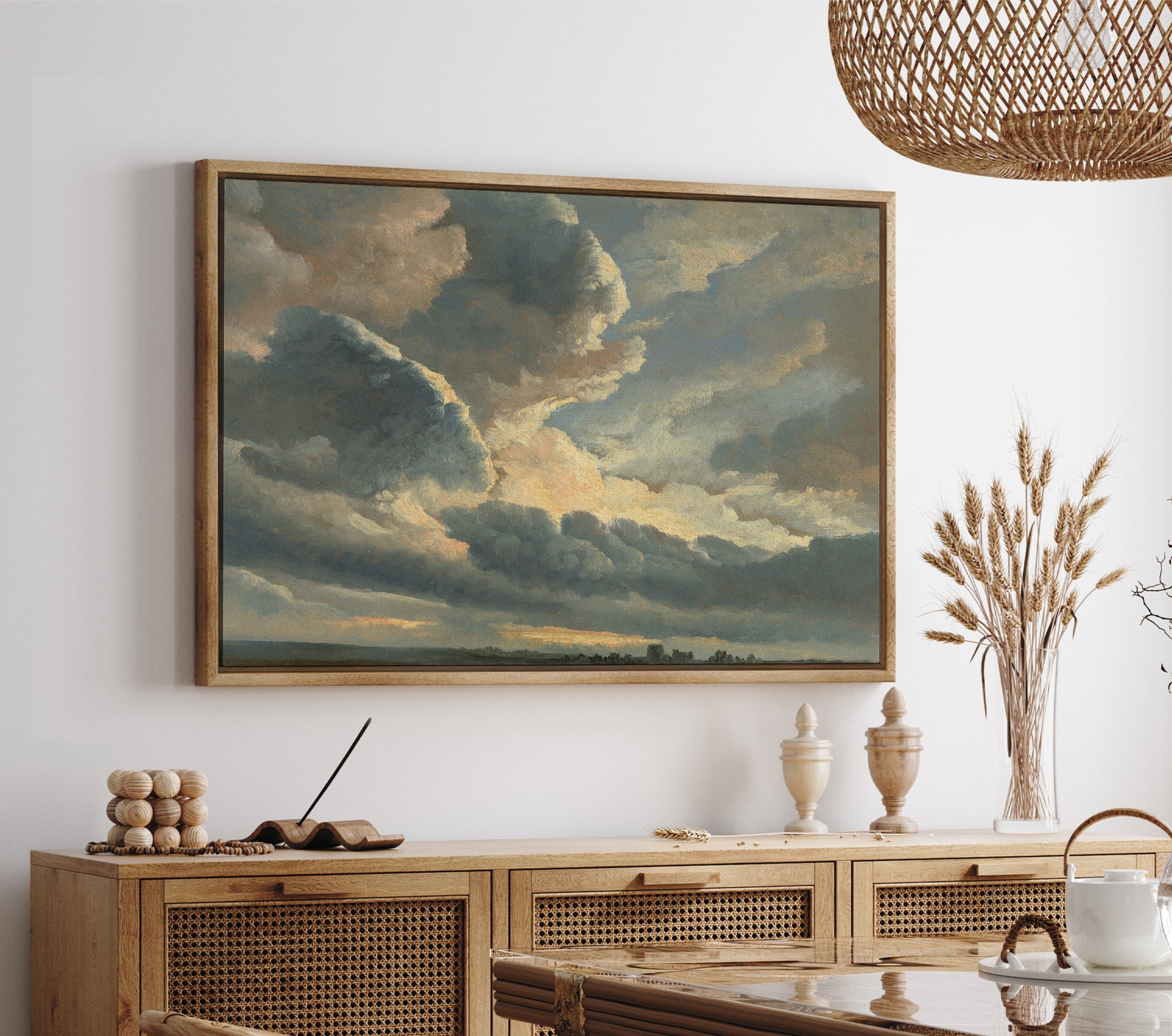 EasySuger Oil Painting Landscape Wall Art, Cloud Study Nature Framed Large Gallery Art, Minimalist Art Ready to Hang (with hanging kit)