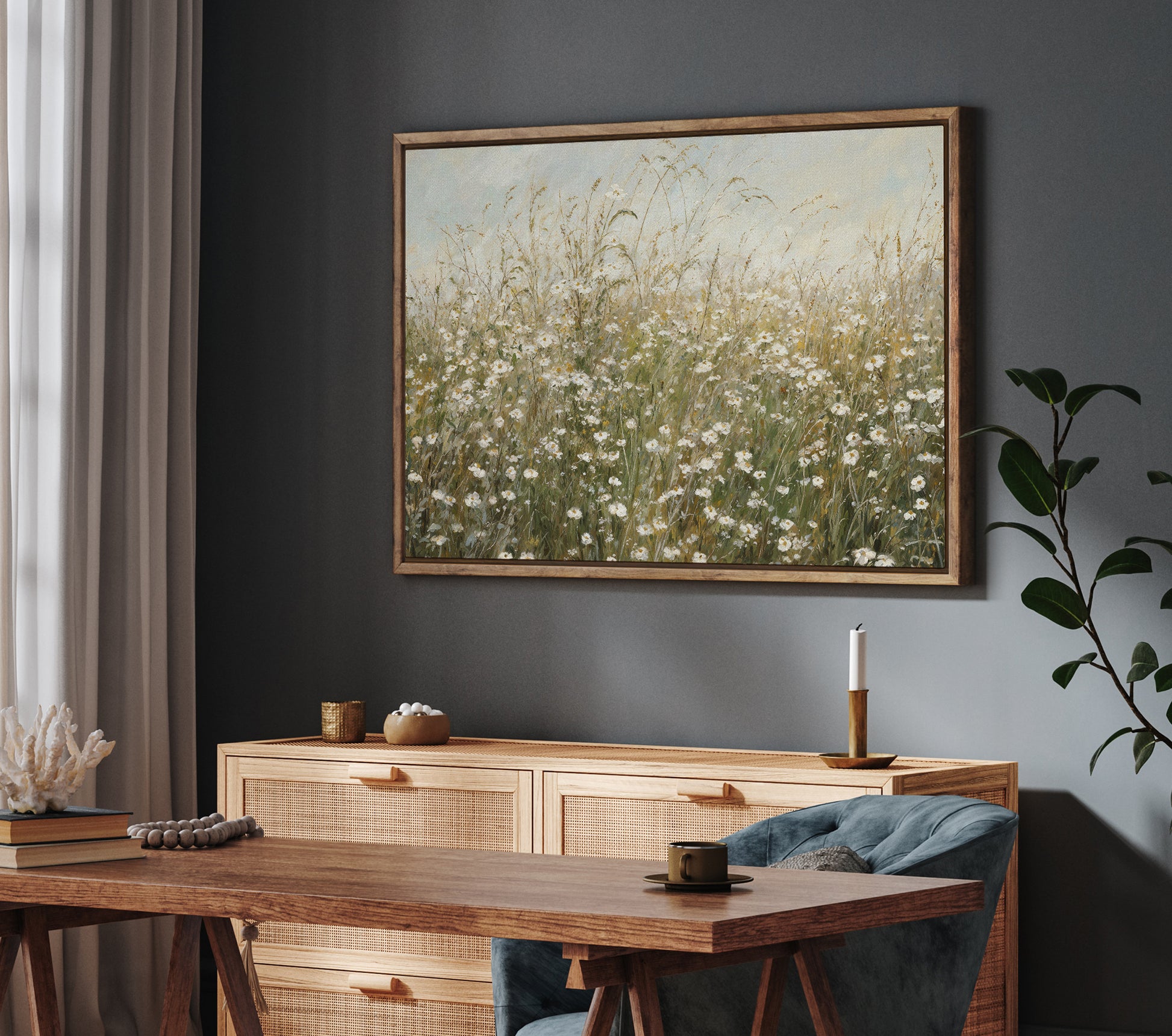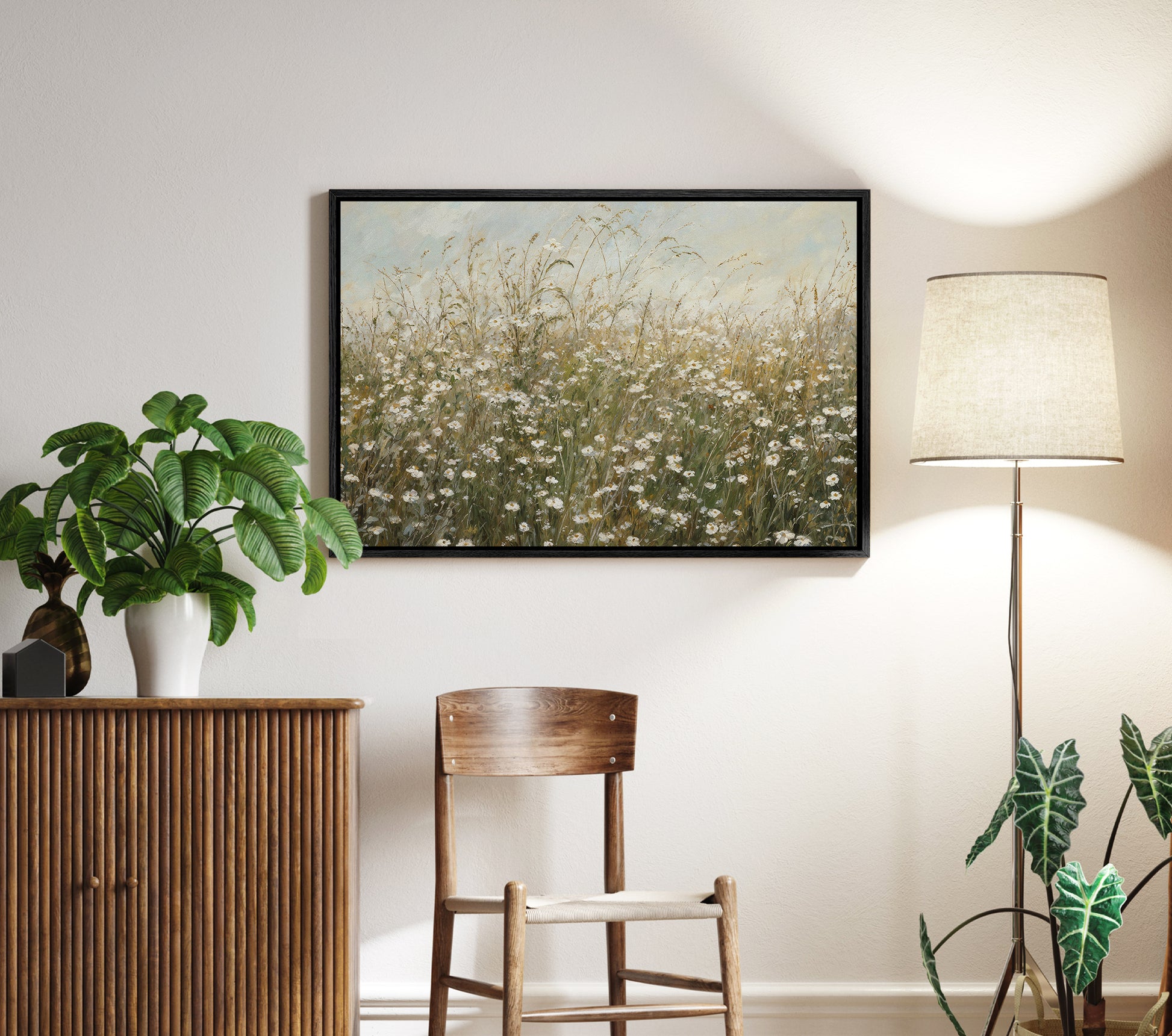 This floating framed canvas is versatile enough to work in a variety of spaces. Hang it vertically or horizontally, or use it as part of a gallery wall for a personalized touch. The lightweight frame also makes it easy to hang and move around as needed.